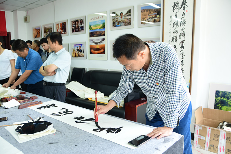 文藝志愿者們為石樓縣群眾現場創作書畫作品