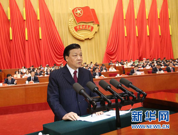 6月17日,中國共產主義青年團第十七次全國代表大會在北京人民大會堂開幕。這是劉云山代表黨中央致祝詞。新華社記者劉衛兵攝